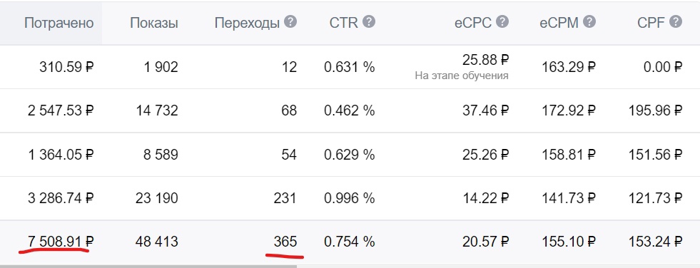 Потрачено было 7 508 рублей; Стоимость ЦЕЛЕВОГО 1 подписчика — 20 рублей