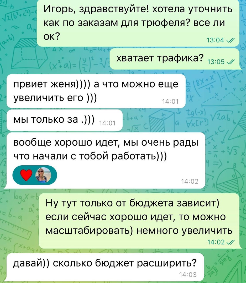 Клиент получил готовую автоматическую воронку трафика и полную запись на заказы конфет к 8 марта. 220 человек заинтересовались рекламным предложением. Это теплая аудитория, с которой можно работать далее: отправлять акции, делиться персональными предложениями. По итогу рекламной кампании результаты Заказчика устроили. Заказчица на 8 марта заказы уже не принимала.